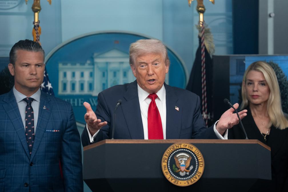 8月11日,美国总统特朗普(中)在华盛顿白宫出席新闻发布会。新华社记者 胡友松 摄