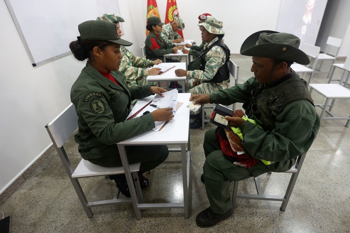 当地时间8月23日,委内瑞拉民众在首都加拉加斯报名加入民兵组织。新华社/法新