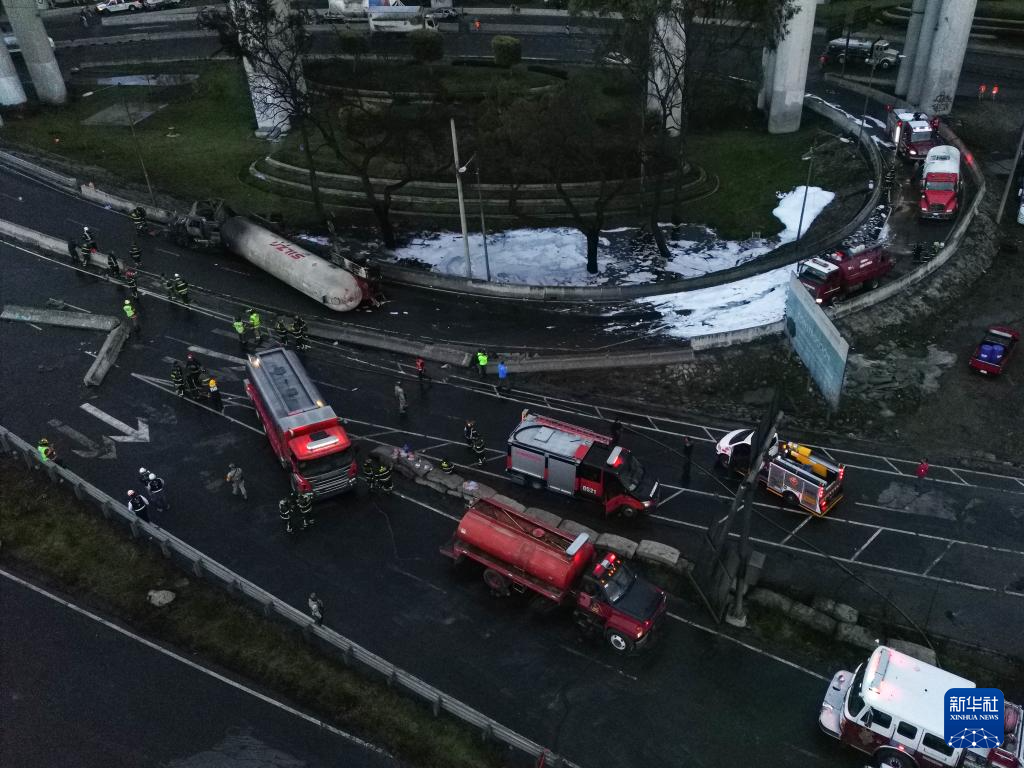 这是9月10日在墨西哥首都墨西哥城拍摄的液化石油气槽罐车爆炸事故现场(无人机照片)。新华社发(弗朗西斯科·卡涅多摄)
