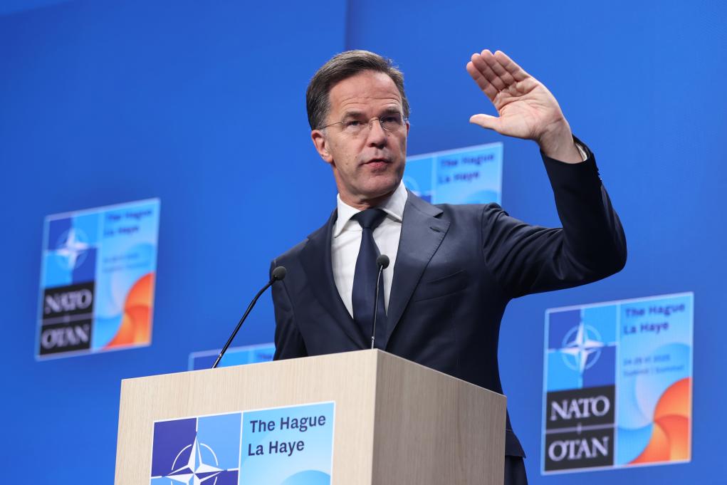 6月25日,在荷兰海牙,北约秘书长吕特在北约峰会期间出席新闻发布会。新华社记者 赵丁喆 摄