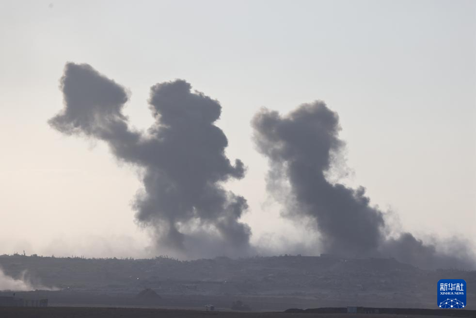 这是9月16日从加沙边境以色列一侧拍摄的加沙地带遭袭后升起浓烟。
