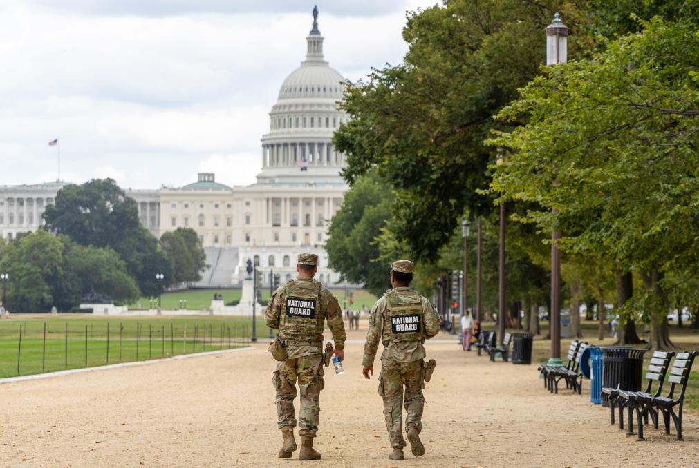 9月4日,国民警卫队成员在美国首都华盛顿巡逻。新华社记者胡友松摄