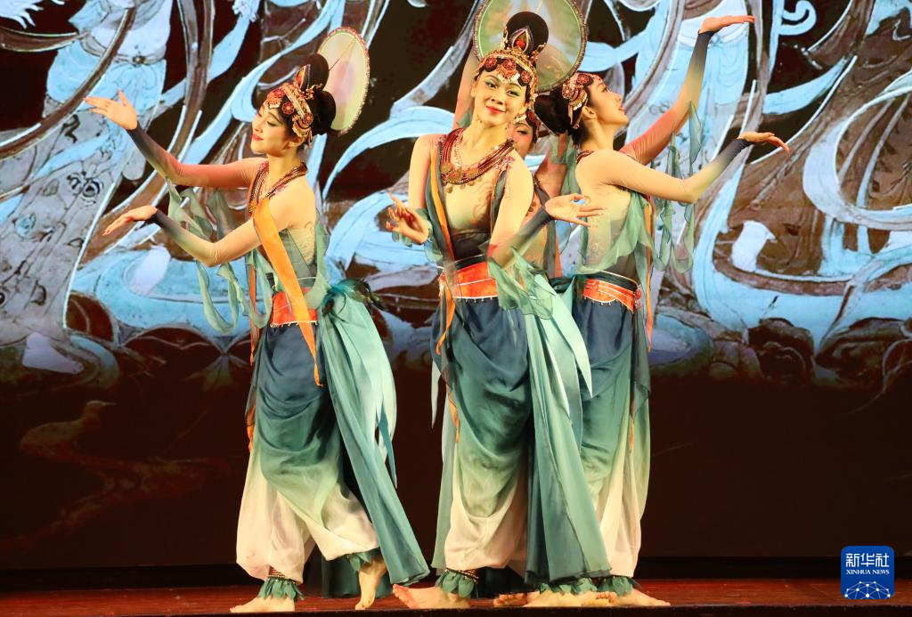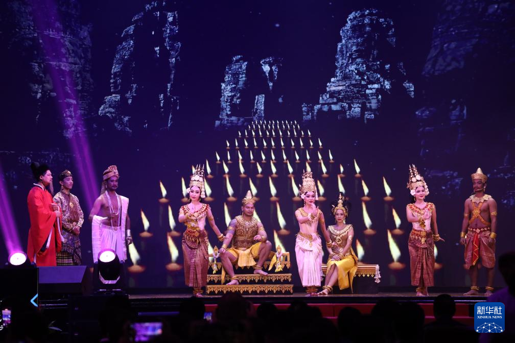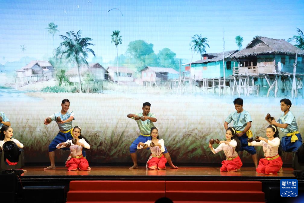 9月28日,柬埔寨表演团体在金边举行的中柬中秋联谊晚会上演出。新华社发(尼多拉摄)