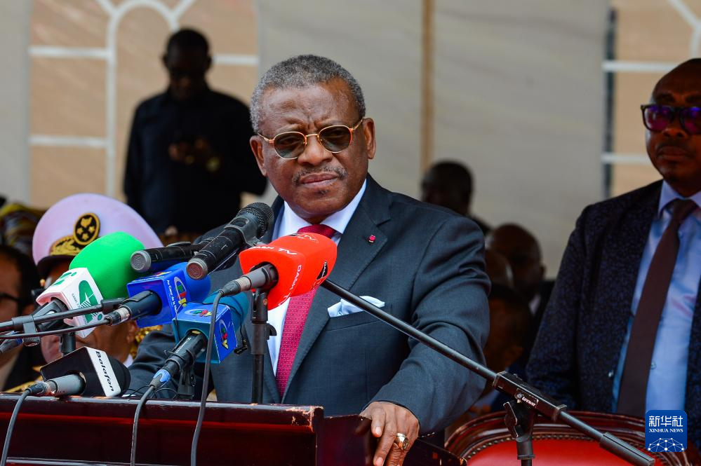 9月30日,在喀麦隆首都雅温得,喀总理恩古特在公共工程部办公大楼揭牌仪式上致辞。新华社发(科普索摄)