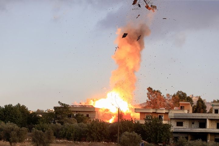 这是2025年9月18日在黎巴嫩南部奈拜提耶附近的泰卜尼特村拍摄的以军空袭的画面。新华社发(阿里·哈希绍摄)