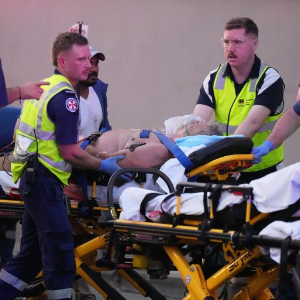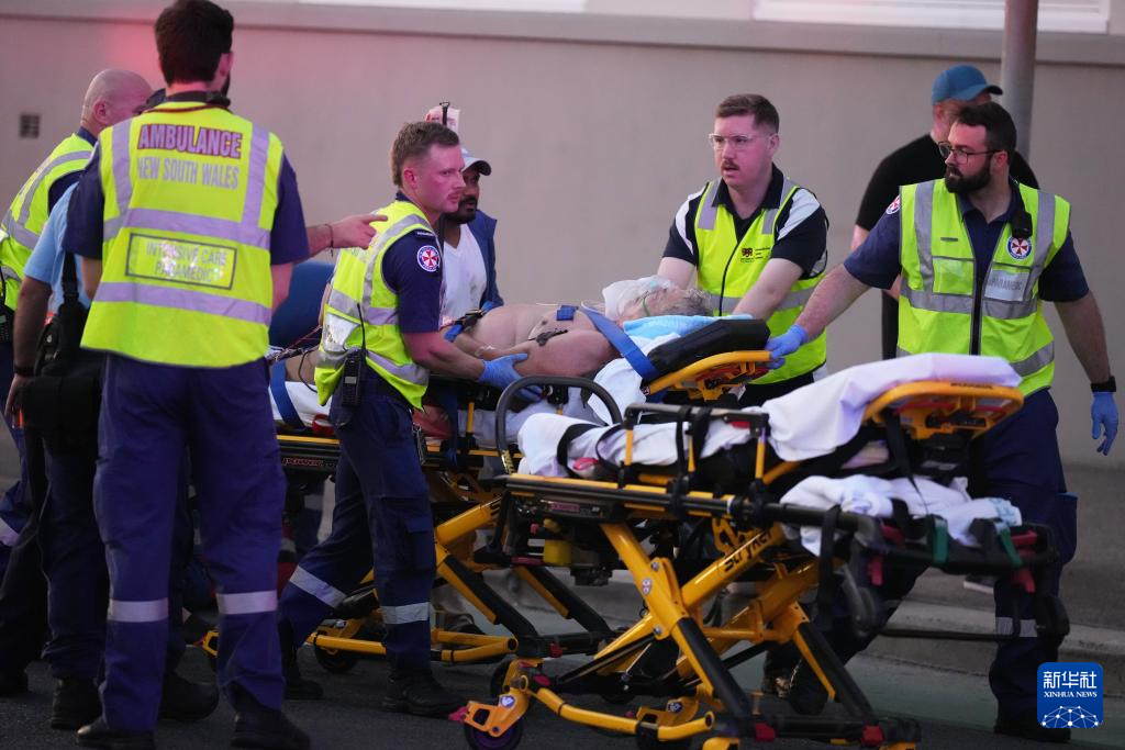 12月14日,在澳大利亚悉尼枪击事件现场,应急人员运送伤员。新华社/美联