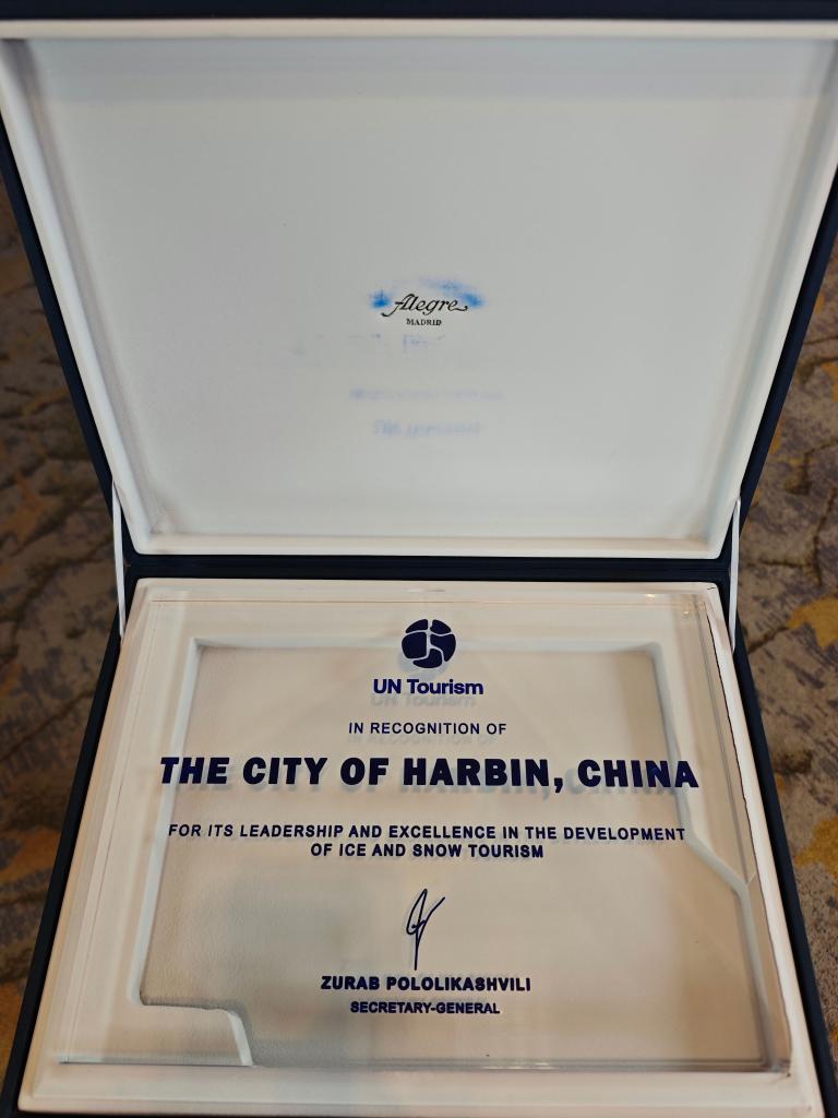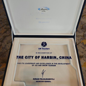 联合国旅游组织授予哈尔滨“世界冰雪旅游卓越城市”称号。(哈尔滨市委宣传部供图)