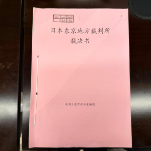 日本东京地方法院对西南地区大轰炸中国受害者对日诉讼案的一审判决书原件。新华社记者 唐文豪 摄
