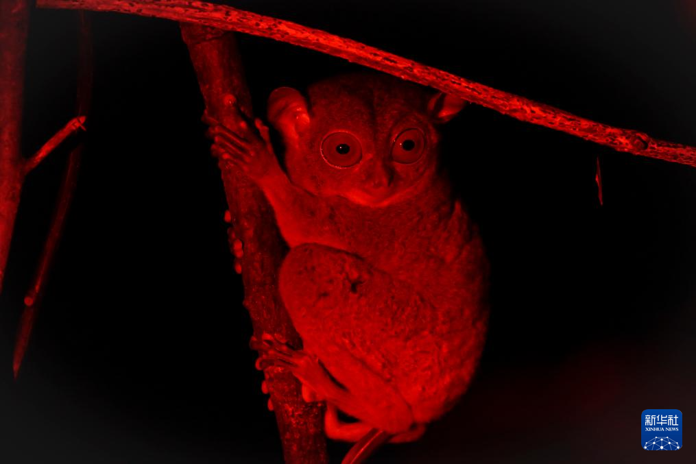 这是1月20日在马来西亚山打根郊外的雨林探索中心拍摄的眼镜猴。新华社记者 程一恒 摄