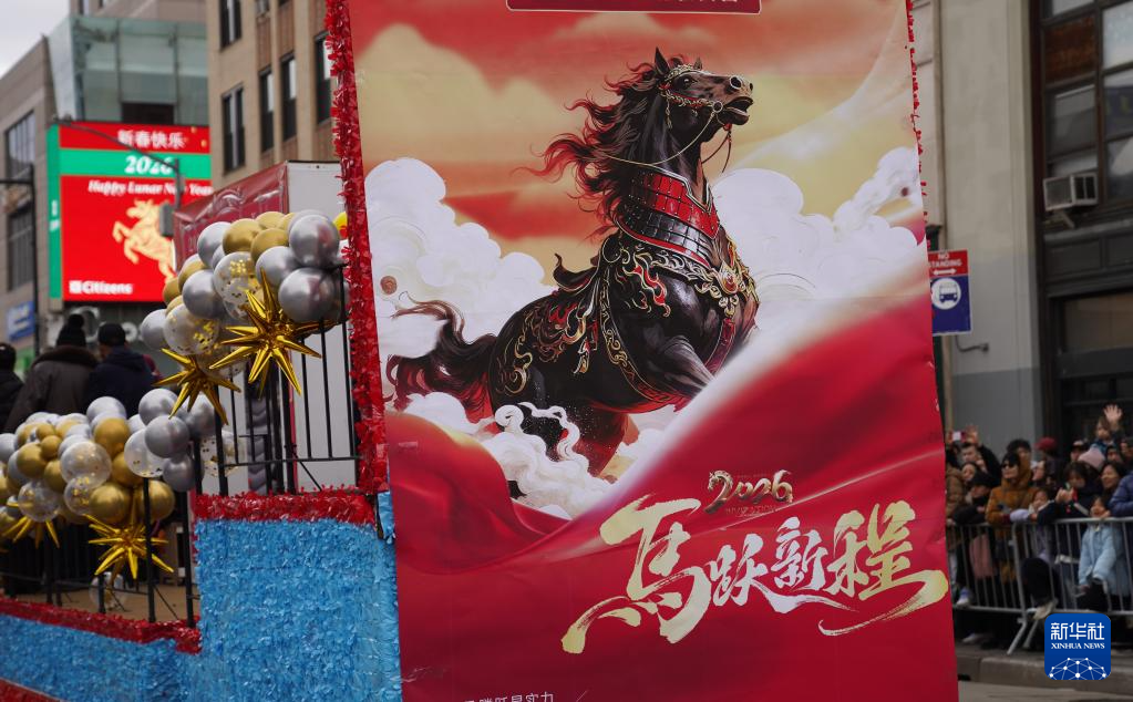 2月21日,美国纽约法拉盛举行游行活动,庆祝中国农历马年春节。