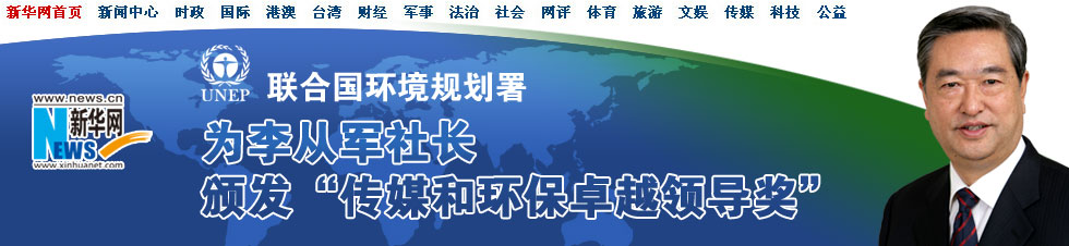 联合国环境规划署14日在北京举行“传媒和环保卓越领导奖”颁奖典礼。新华社社长李从军因为对全球环保事业的努力,成为这一奖项的首位得主。