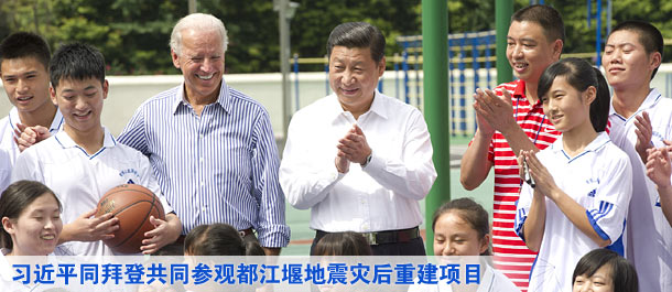 习近平同美国副总统拜登共同参观都江堰