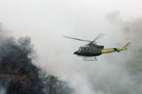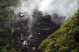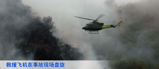 直升机在飞机坠毁现场上空盘旋