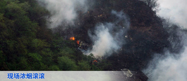飞机坠毁现场浓烟滚滚