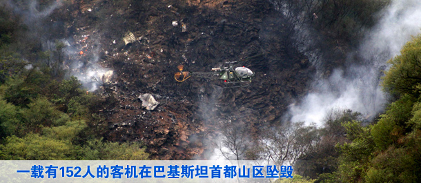 一架载有152人的客机在巴基斯坦首都山区坠毁