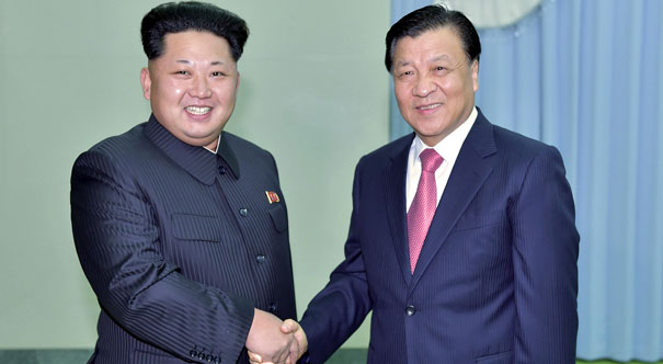 刘云山向金日成主席和金正日总书记塑像敬献花篮