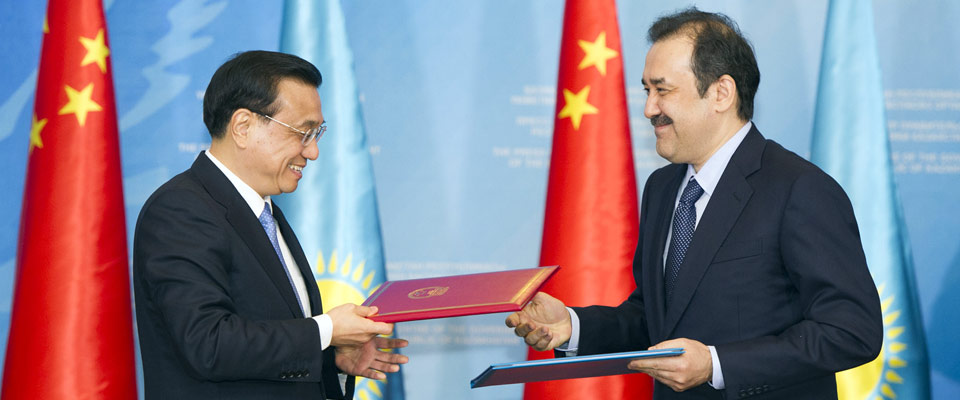 李克强与哈萨克斯坦总理马西莫夫共同见证两国合作文件签署