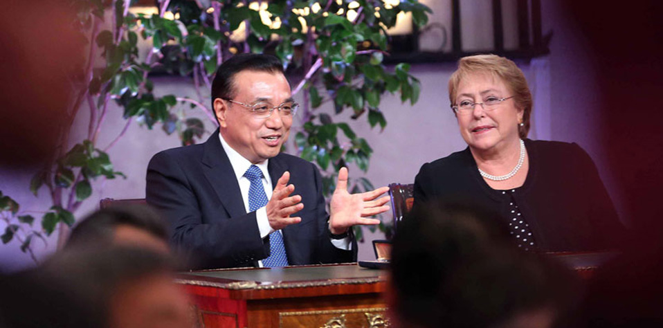 智利总统巴切莱特26日在纪念中智建交45周年会上盛赞中智多个“第一”:智利是南美第一与中国建交、拉美第一与中国签署自贸协定的国家,昨天又创造了第一次唱国歌的国宴,引发会心笑声。此前欢迎国宴遇音响故障放不出国歌,李克强当即提议清唱,为智总统化解难题。 [详细]