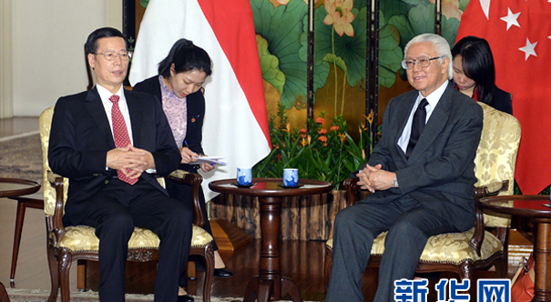 张高丽与新加坡副总理张志贤共同主持中新三个高级别合作机制会议