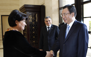中共中央政治局常委、中央纪委书记贺国强出访过境巴库时,于当地时间16日上午会见了阿塞拜疆政府总理阿尔图尔·拉西扎德。