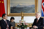 贺国强抵达雷克雅未克开始对冰岛进行正式友好访问