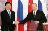 胡锦涛和普京共同出席中俄有关协议签字仪式