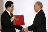 胡锦涛和纳扎尔巴耶夫签署《中哈关于建立和发展战略伙伴关系的联合声明》