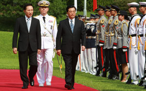 胡锦涛出席李明博为他举行的隆重欢迎仪式