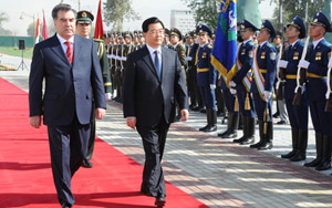 胡锦涛出席拉赫蒙举行的隆重欢迎仪式