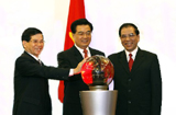 胡锦涛同越共中央总书记农德孟、越南国家主席阮明哲会谈
