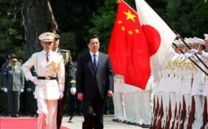 日本天皇明仁举行仪式欢迎胡锦涛访日