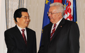 国家主席胡锦涛会见克罗地亚总理萨纳德