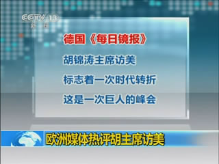 欧洲媒体热评胡主席访美