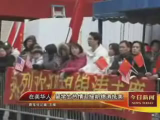 在美华人、留学生热情迎接胡锦涛抵美