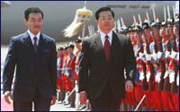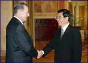 应俄罗斯总统普京、法国总统希拉克、哈萨克斯坦总统纳扎尔巴耶夫、蒙古国总统巴嘎班迪的邀请,胡锦涛主席于2003年5月26日至6月5日对俄联邦、哈萨克斯坦和蒙古国进行国事访问,并出席在莫斯科举行的上海合作组织成员国元首第三次会晤、在圣彼得堡 举行的建市300周年庆典和在法国埃维昂 举行的南北领导人非正式对话会议。这是中国新一届中央领导集体产生后国家主席首次出访。访问期间,胡锦涛将广泛接触各国领导人和各界人士,就双边关系和共同关心的重大国际问题深入交换意见,并签署一系列重要的合作文件。 |
