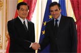 巴黎香街两边悬挂中法国旗 迎接胡主席来访