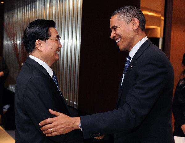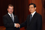 胡锦涛同俄罗斯总统梅德韦杰夫举行会晤