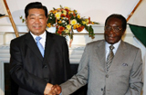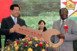 贾庆林与穆加贝共同出席中国援助津巴布韦农业机械设备交接仪式