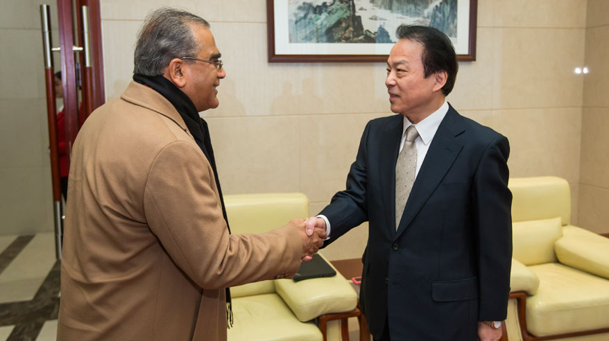 何平会见今日印度媒体集团董事会主席兼总编辑阿伦·普里
