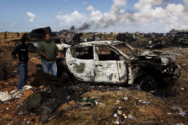 法国战机摧毁数辆卡扎菲军队装甲车