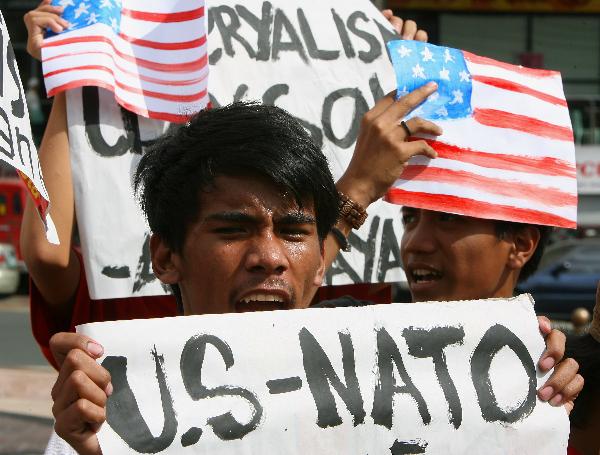 菲律宾民众抗议多国部队对利比亚进行军事打击