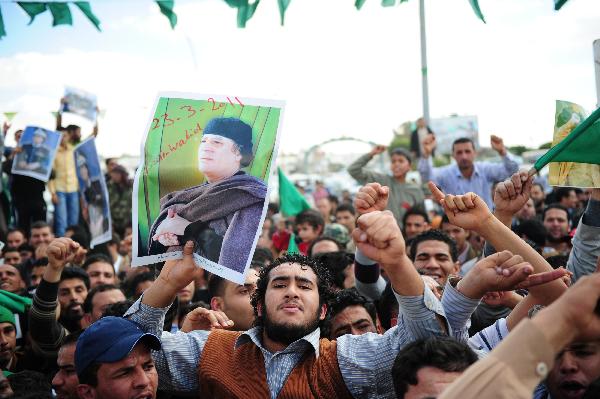 卡扎菲支持者在贝尼沃利德举行示威游行