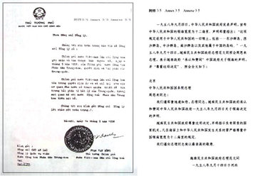48. 1958年9月4日,中国政府发布《中华人民共和国政府关于领海的声明》,宣布中国的领海宽度为12海里,明确指出:“这项规定适用于中华人民共和国的一切领土,包括 ……东沙群岛、西沙群岛、中沙群岛、南沙群岛以及其他属于中国的岛屿。”9月14日,越南政府总理范文同照会中国国务院总理周恩来郑重表示,“越南民主共和国政府承认和赞同中华人民共和国政府1958年9月4日关于领海决定的声明”,“越南民主共和国政府尊重这项决定”。