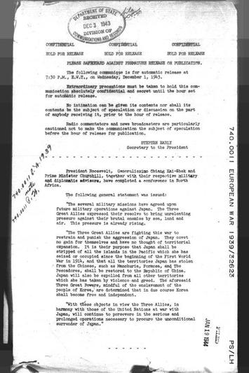 27. 日本在侵华战争期间曾非法侵占中国南海诸岛。中国人民对日本侵略进行了英勇抵抗。随着世界反法西斯战争和中国人民抗日战争的推进,中、美、英三国于1943年12月发表《开罗宣言》郑重宣布,日本必须将所窃取的中国领土归还中国。1945年7月,中、美、英三国发表《波茨坦公告》,其中第8条明确规定,“开罗宣言之条件必将实施”。