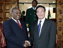 吴邦国会见津巴布韦副总统姆西卡[图]