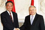 正在波兰进行正式友好访问的中国全国人大常委会委员长吴邦国当地时间25日下午在克拉科夫会见了小波兰省省督克利马。
