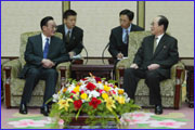 | · | 王毅:吴邦国访朝将对中朝关系发展产生重要影响 (31/10-19:32) 中共中央政治局常委、中国全国人大常委会委员长吴邦国结束对朝鲜的正式友好访问之前,陪同访问的外交部副部长王毅31日接受随行中国记者的联合采访,介绍了此次访问的成果。 | | · | 吴邦国结束访问朝鲜回国 (31/10-16:16) 中共中央政治局常委、中国全国人大常委会委员长吴邦国31日下午结束对朝鲜的正式友好访问,离开平壤回国。 | | · | 通讯:睦邻友好合作——中朝友谊收获金秋 (31/10-07:32) 秋天是成熟的季节,是收获的季节。中朝两党和两国之间的关系必将发展得更加成熟,中朝睦邻友好关系必将结出更加丰硕的成果。完全可以相信,吴邦国此次对朝鲜的访问,将为中朝两国在新世纪的互利合作提供新的契机,中朝传统友谊一定能在新形势下取得新的发展。 | | · | 金正日会见吴邦国 双方原则同意继续六方会谈 (30/10-20:39) 朝鲜劳动党总书记、国防委员会委员长金正日30日下午在平壤会见了中共中央政治局常委、中国全国人大常委会委员长吴邦国。双方在友好的气氛中进行了深入交谈。 | | · | 吴邦国会见朝鲜内阁总理朴凤柱 瞻仰金日成遗容 (30/10-17:49) 中共中央政治局常委、中国全国人大常委会委员长吴邦国30日在平壤会见了朝鲜内阁总理朴凤柱。双方着重就两国经贸合作交换了意见,还交流了各自在国家建设过程中的经验。 | | · | 吴邦国委员长会见朝鲜内阁总理朴凤柱 (30/10-14:17) 2003年10月30日上午,中共中央政治局常委、全国人大常委会委员长吴邦国在平壤会见了朝鲜内阁总理朴凤柱。双方着重就两国经贸合作交换了意见,还交流了各自在国家建设过程中的经验。 | | · | 吴邦国与金永南会谈:核问题复杂应坚持对话 (29/10-20:44) 中国全国人大常委会委员长吴邦国29日下午在平壤与朝鲜最高人民会议常任委员会委员长金永南举行了会谈。双方在友好、诚挚的气氛中就双边关系和共同关心的国际和地区问题交换了意见。 | | · | 朝鲜:访问是对朝建设强盛大国和祖国统一的支持 (29/10-15:54) 朝鲜劳动党中央机关报《劳动新闻》29日发表题为《中国人民的友谊使节》的社论,热烈欢迎中共中央政治局常委、全国人大常委会委员长吴邦国率领中国国家代表团访问朝鲜。 | | · | 详讯:吴邦国率中国国家代表团抵达朝鲜访问 (29/10-13:17) 在机场发表的书面讲话中,吴邦国说,中国国家代表团带着中国人民对朝鲜人民的深情厚谊来到朝鲜民主主义人民共和国进行正式友好访问。他代表中共中央、中国政府和人民,向朝鲜劳动党中央、朝鲜政府和人民致以亲切的问候和美好的祝愿。 | | · | 吴邦国率中国国家代表团离京访问朝鲜 (29/10-10:33) 应朝鲜民主主义人民共和国最高人民会议常任委员会和朝鲜民主主义人民共和国内阁的邀请,中共中央政治局常委、全国人大常委会委员长吴邦国率中国国家代表团29日上午乘专机离开北京赴朝鲜进行正式友好访问。 | | · | 外交部发言人就吴邦国访朝等答记者问 (29/10-08:01) 10月28日下午,外交部发言人章启月回答记者提问时表示,吴邦国委员长此访是对朝方两次国家代表团访华的回访,是一次非常重要的访问。这次访问对于促进两国的关系有着重要的意义。 | | · | 背景资料:20世纪90年代以来中朝关系大事记 (29/10-15:53) 中国和朝鲜自古以来就是唇齿相依的友好邻邦。1949年10月6日,两国建立外交关系。1950年朝鲜战争爆发后,中国人民志愿军与朝鲜军民并肩浴血奋战,赢得了战争的胜利。1961年7月11日,两国签署了中朝友好合作互助条约。中朝两国一直保持着传统的睦邻友好合作关系。20世纪90年代以来,两国领导人进一步加强交往,中朝睦邻友好合作关系进一步发展。 | | · | 金正日会见吴邦国 中朝原则同意继续六方会谈 (30/10-19:44) 中国和朝鲜两国30日在平壤表示原则同意继续六方会谈进程。 朝鲜劳动党总书记、朝鲜国防委员会委员长金正日30日在平壤会见了中共中央政治局常委、中国全国人大常委会委员长吴邦国,双方就双边关系等共同关心的问题深入交换了意见。 |