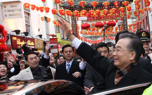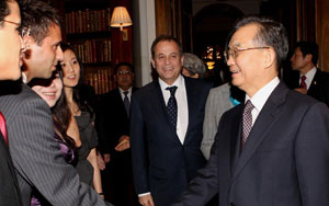 温家宝看望中国驻英使馆工作人员、华侨华人代表