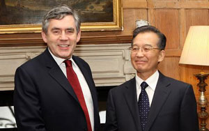 英国首相布朗举行仪式欢迎中国国务院总理温家宝