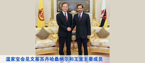 温家宝会见文莱苏丹哈桑纳尔和王室主要成员